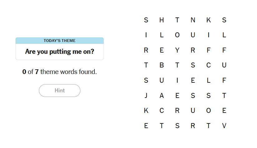 - To earn a hint, find any non-theme word of at least four letters in the grid.