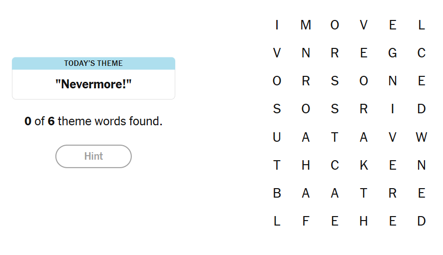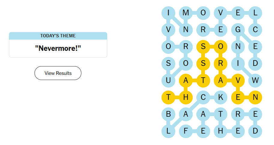 29 October 2025 NYT Strands Theme: “Nevermore!”