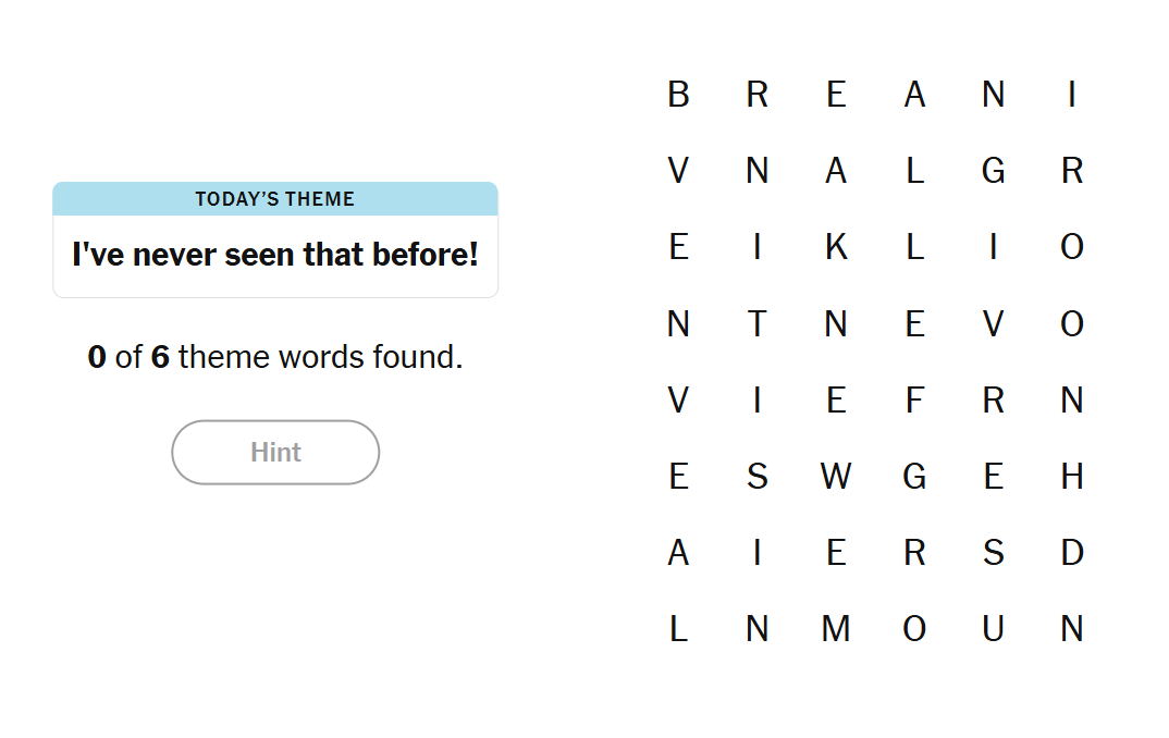 03 January 2026 NYT Strands Theme: “I've never seen that before!”