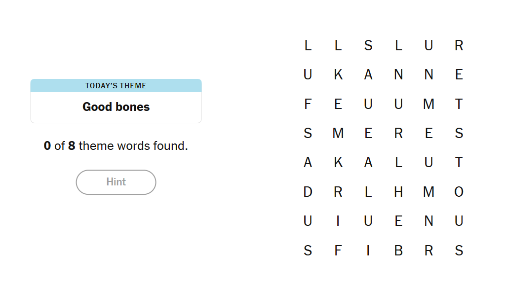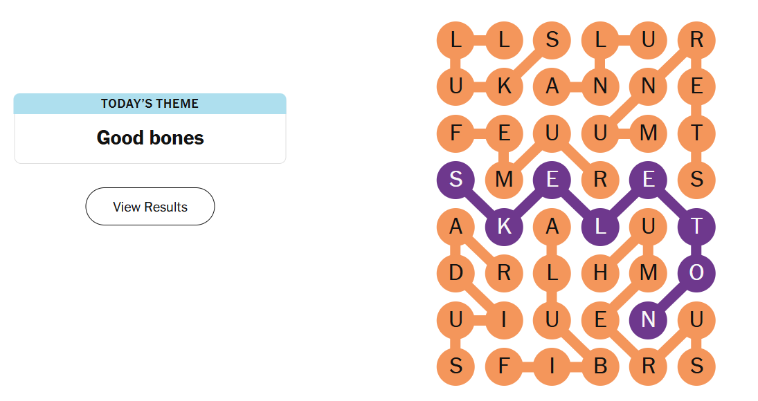 Today’s theme dives beneath the surface — literally to the core of our structure. With “Good Bones,” the puzzle turns the spotlight on the sturdy framework that gives our bodies shape and strength. Expect a satisfying lineup of bone-related terms that build the human form piece by piece.