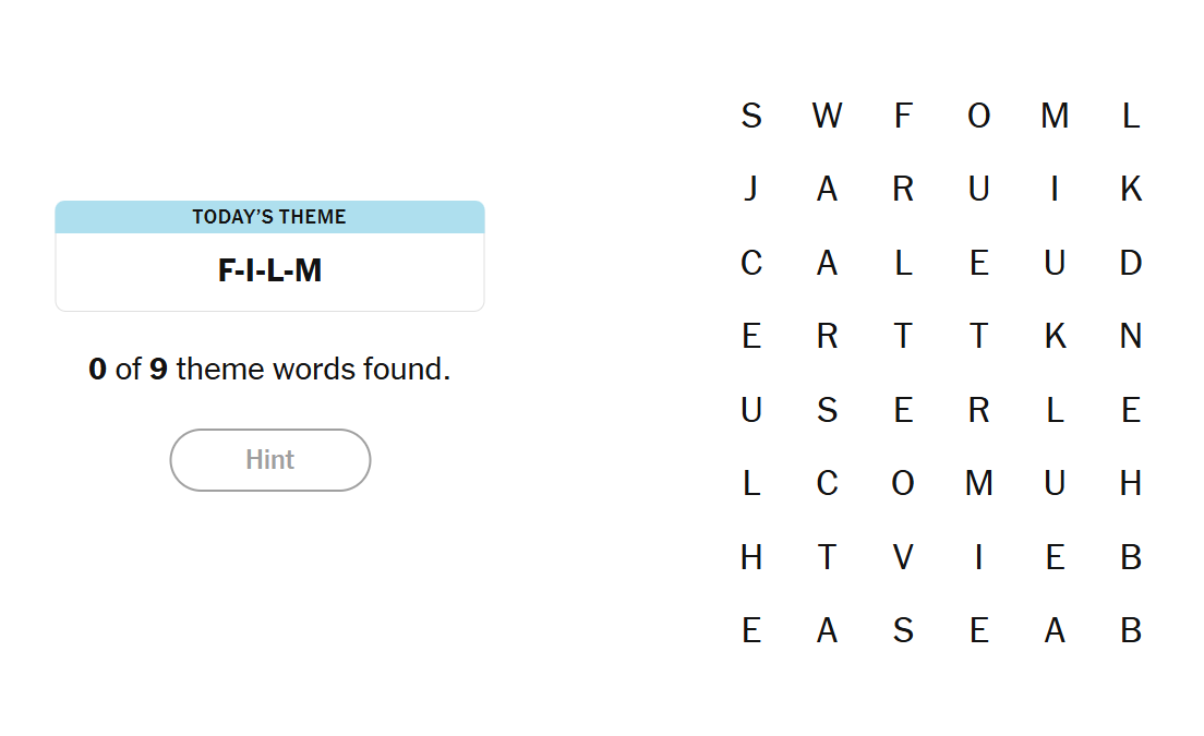 Today’s Strands rolled out the red carpet! The theme F-I-L-M challenged solvers to think Hollywood — but with a twist. Each answer was a four-letter movie title, short but iconic, proving that you don’t need many letters to make movie magic.