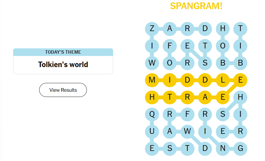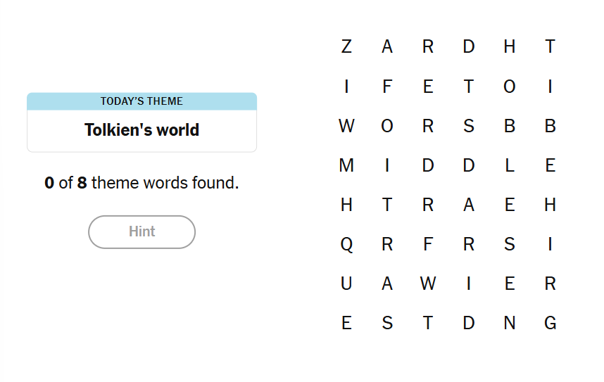 6 December 2025 NYT Strands Theme: “Tolkien's World”