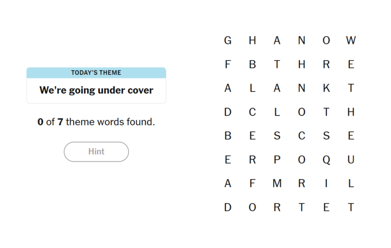 08 April 2026 NYT Strands Theme: “We’re going under cover”