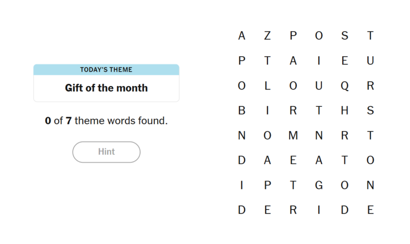15 April 2026 NYT Strands Theme: “Gift of the month”