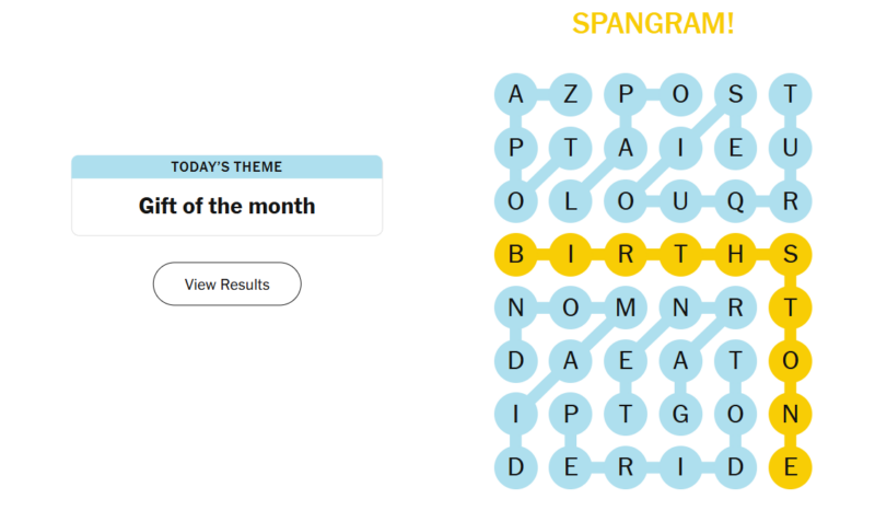 Today’s theme leans into something both personal and symbolic—items traditionally linked to each month of the year. The puzzle feels elegant and slightly educational, with recognizable words that may still require a bit of recall. The spangram ties everything together cleanly, making the theme satisfying once uncovered.