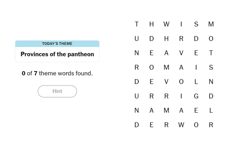• To earn a hint, find any non-theme word of at least four letters in the grid.