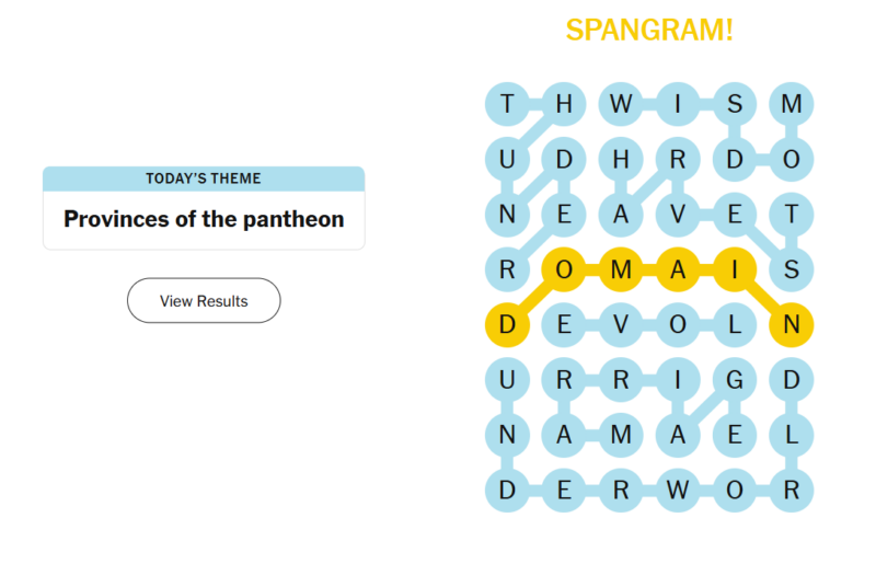 23 April’s puzzle felt moderately easy, especially if you’re familiar with mythology and divine roles. The theme was clear and satisfying, with a tidy spangram tying everything together. How many did you find on your own?