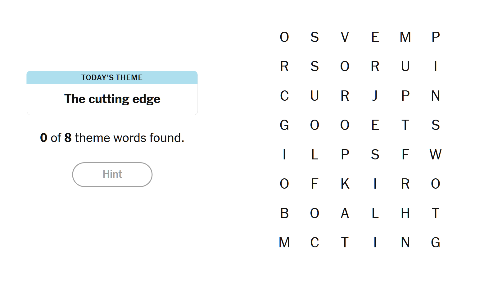 Each puzzle usually has around 6–8 theme words.