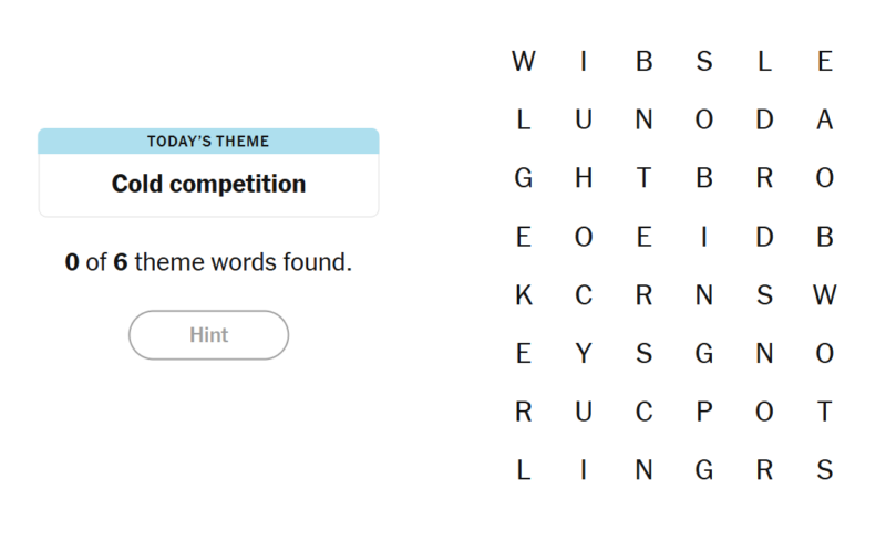 - Spangram: It’s the general category that includes all of these chilly competitions.
