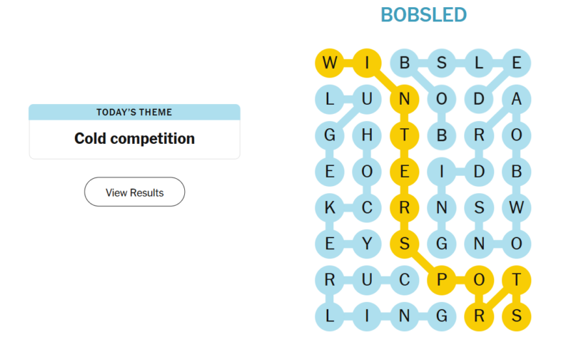 Today’s theme centered on winter athletic events that thrive in freezing temperatures and snowy arenas. The puzzle felt cohesive and energetic, with recognizable sports scattered across the grid. The spangram was broad and satisfying, perfectly summing up the entire category while connecting each event under one frosty umbrella.