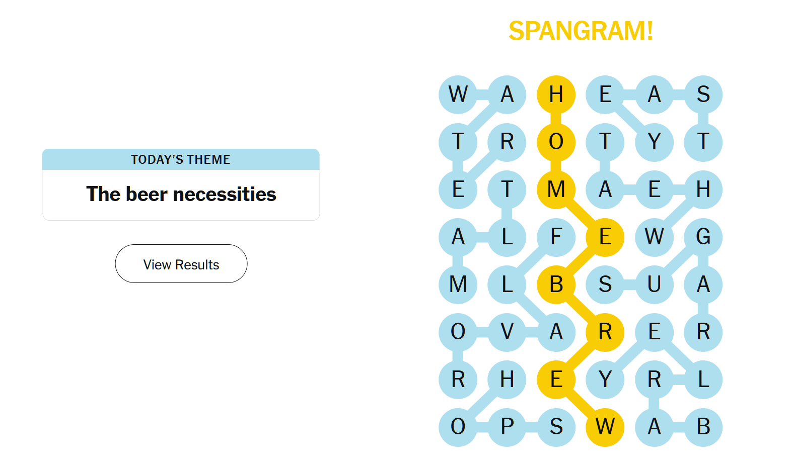 The spangram is a phrase tied to making beer at home (not a single ingredient).