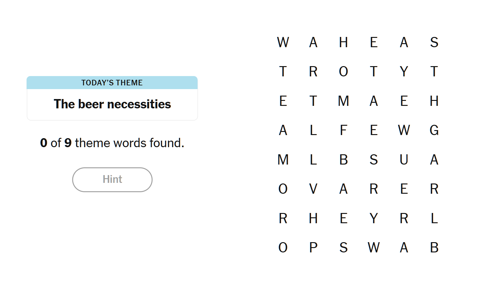 - To earn a hint, find any non-theme word of at least four letters in the grid.