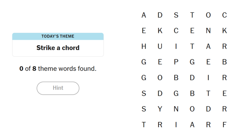- To earn a hint, find any non-theme word of at least four letters in the grid.