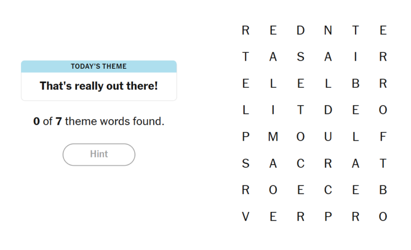 - To earn a hint, find any non-theme word of at least four letters in the grid.