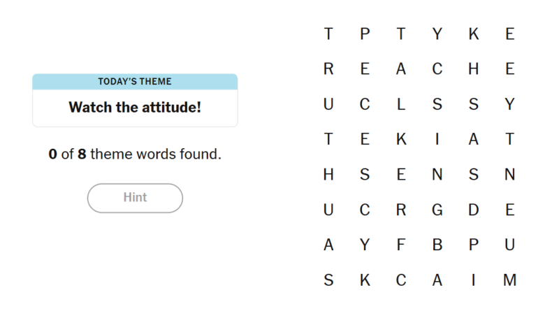 26 February 2026 NYT Strands Theme: “Watch the attitude!”