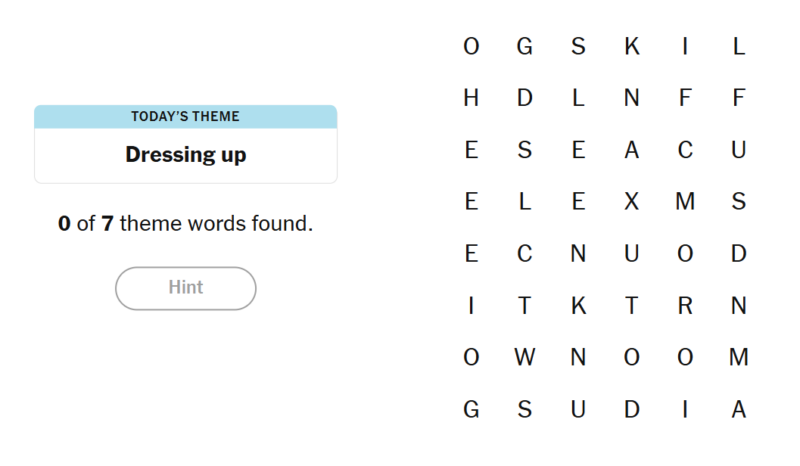 28 February 2026 NYT Strands Theme: “Dressing up”