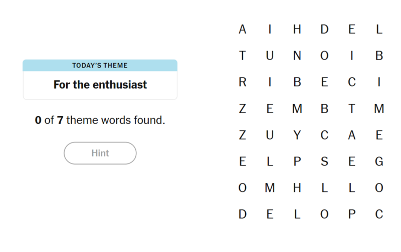 - To earn a hint, find any non-theme word of at least four letters in the grid.