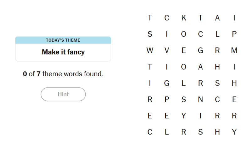 - To earn a hint, find any non-theme word of at least four letters in the grid.