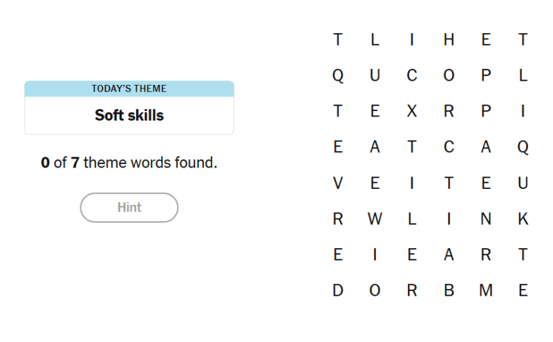 - To earn a hint, find any non-theme word of at least four letters in the grid.