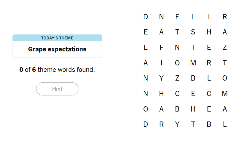 - To earn a hint, find any non-theme word of at least four letters in the grid.