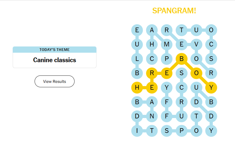 The spangram ties everything together with something you might call out to get your dog’s attention