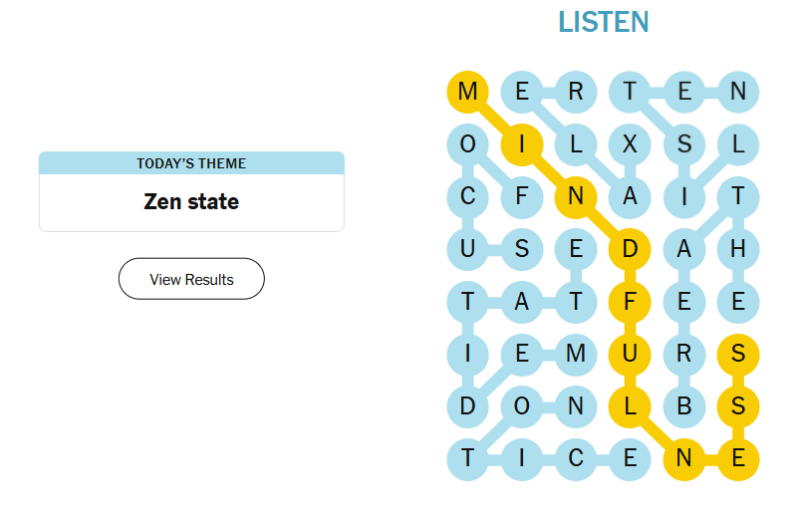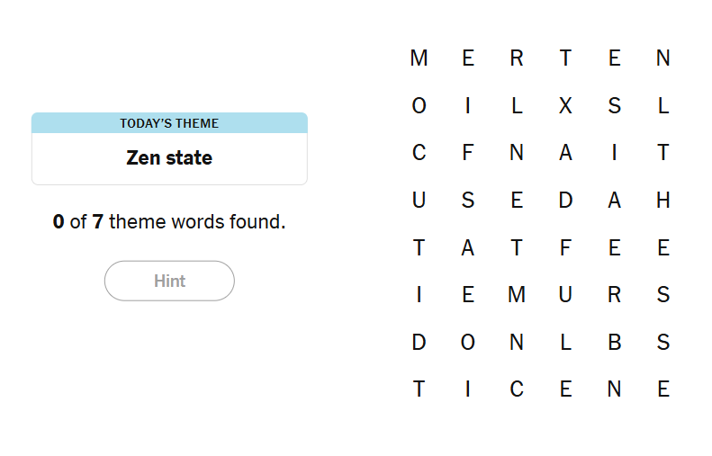 Today’s theme focused on mindfulness, presence, and inner calm. The puzzle felt intentionally slow-paced, encouraging careful scanning rather than frantic searching. The word choices were approachable but thoughtfully selected, reinforcing the meditative vibe, while the spangram itself was clear, meaningful, and perfectly on-theme.