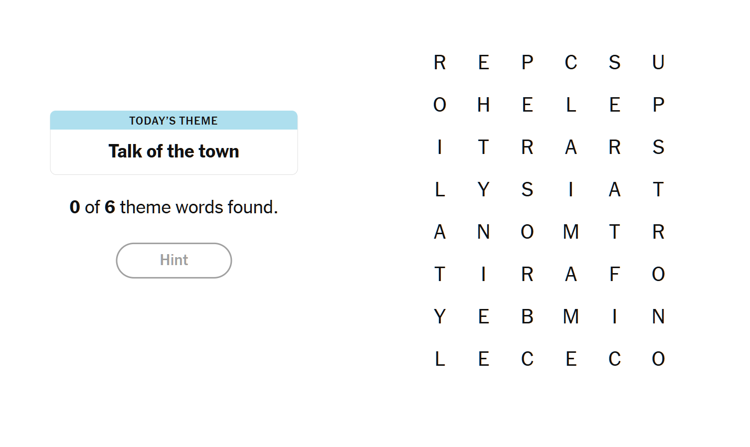 • To earn a hint, find any non-theme word of at least four letters in the grid.
