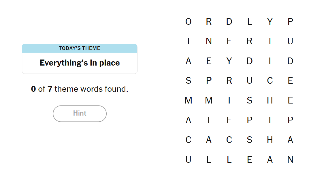 - To earn a hint, find any non-theme word of at least four letters in the grid.
