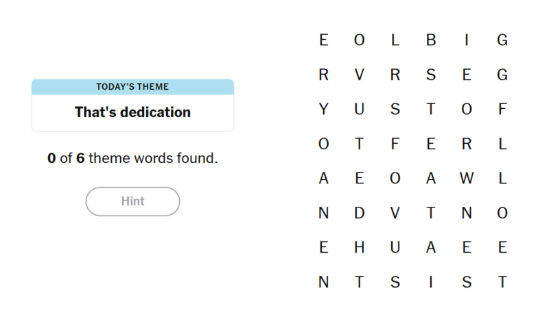 6 March 2026 NYT Strands Theme: “That’s dedication”