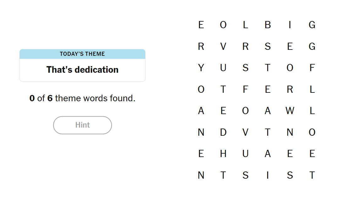 - To earn a hint, find any non-theme word of at least four letters in the grid.