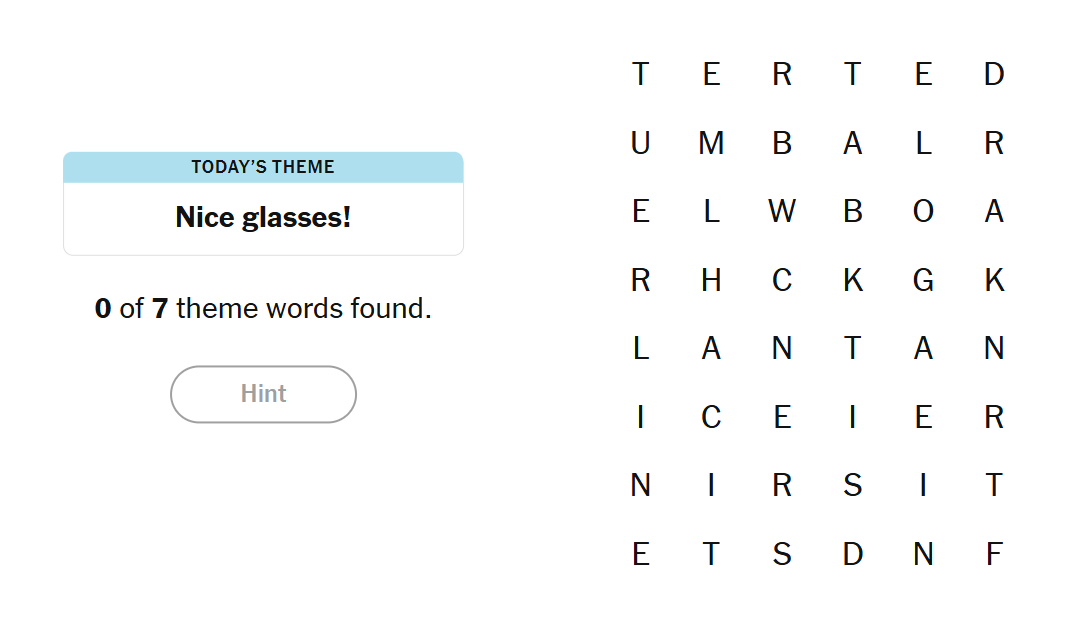 - To earn a hint, find any non-theme word of at least four letters in the grid.