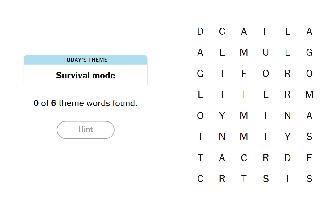 11 March 2026 NYT Strands Theme: “Survival Mode”