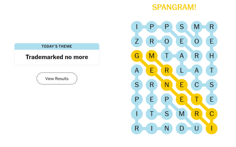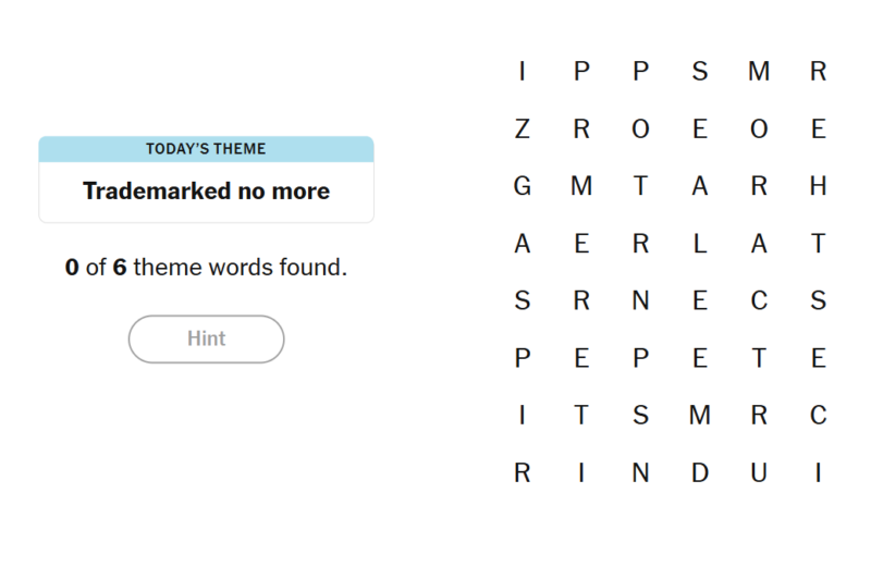 This spangram perfectly captures the theme, referring to words that began as trademarks but became widely adopted in everyday language, losing their protected status and becoming part of the common vocabulary.