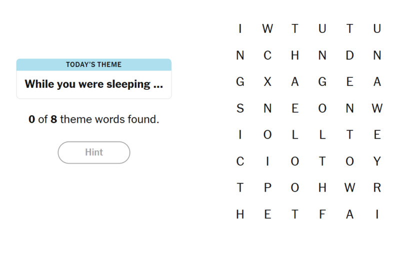 - To earn a hint, find any non-theme word of at least four letters in the grid.