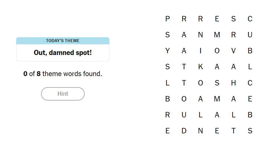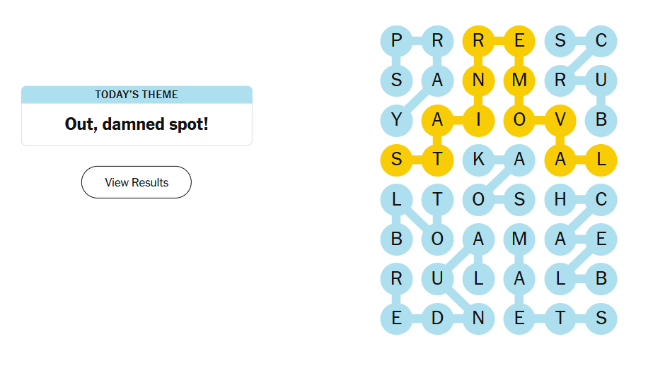 13 November 2025 NYT Strands Theme: “Out, damned spot”