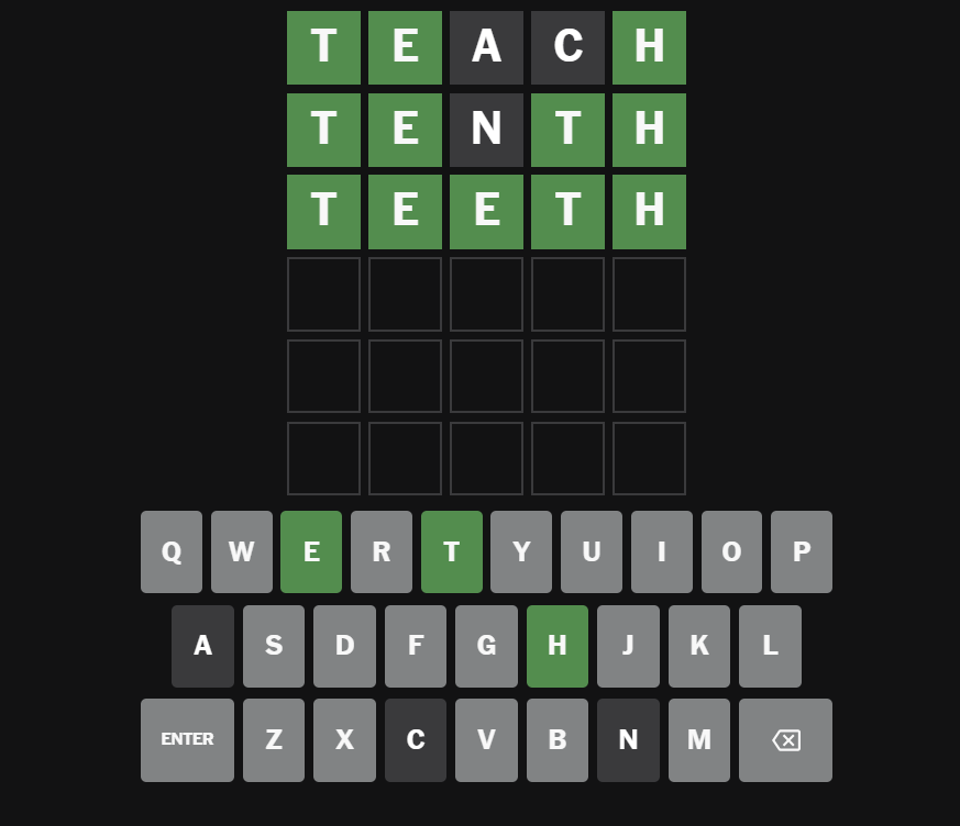 You’ve burned through a couple of guesses. The vowels are playing games with you, consonants teasing but not landing in the right spot. Then, piece by piece, the grid begins to take shape.