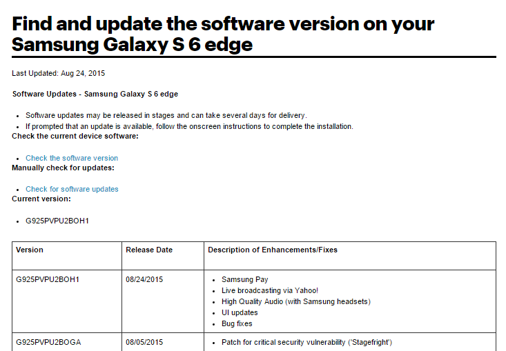 The image at top is about Sprint Galaxy S6 Edge Samsung Pay update build G925PVPU2BOH1, while the once below pertains to Sprint Galaxy S6, build G920PVPU2BOH1.