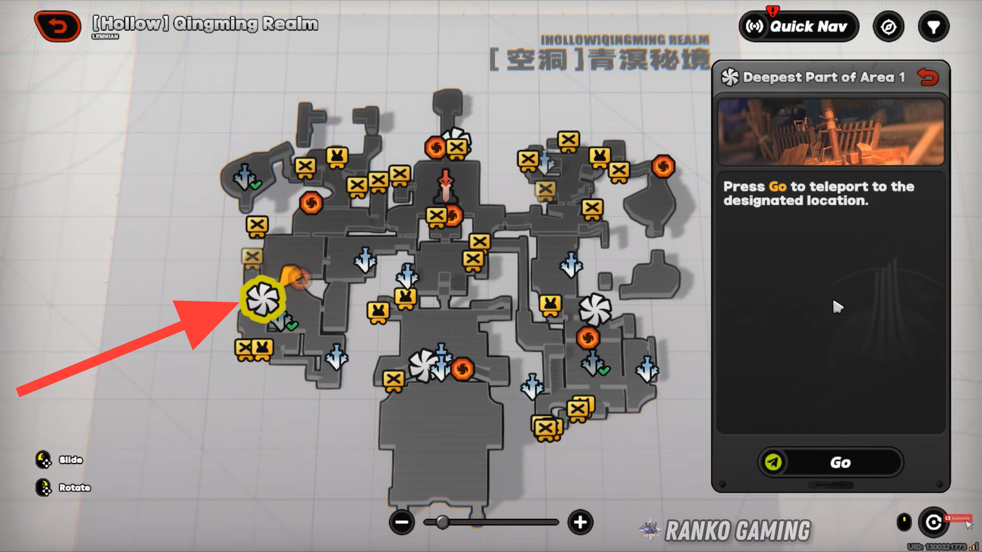 Teleport to the Deepest Part of Area 1 in the (Hollow) Qingming Realm.