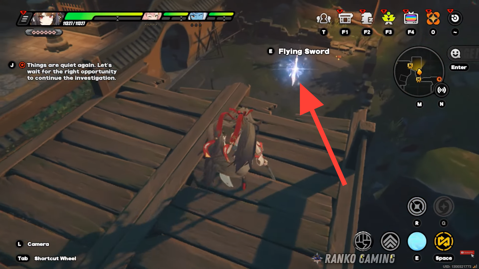Go straight ahead, then turn right and use your Flying Sword to drop down to the lower area.