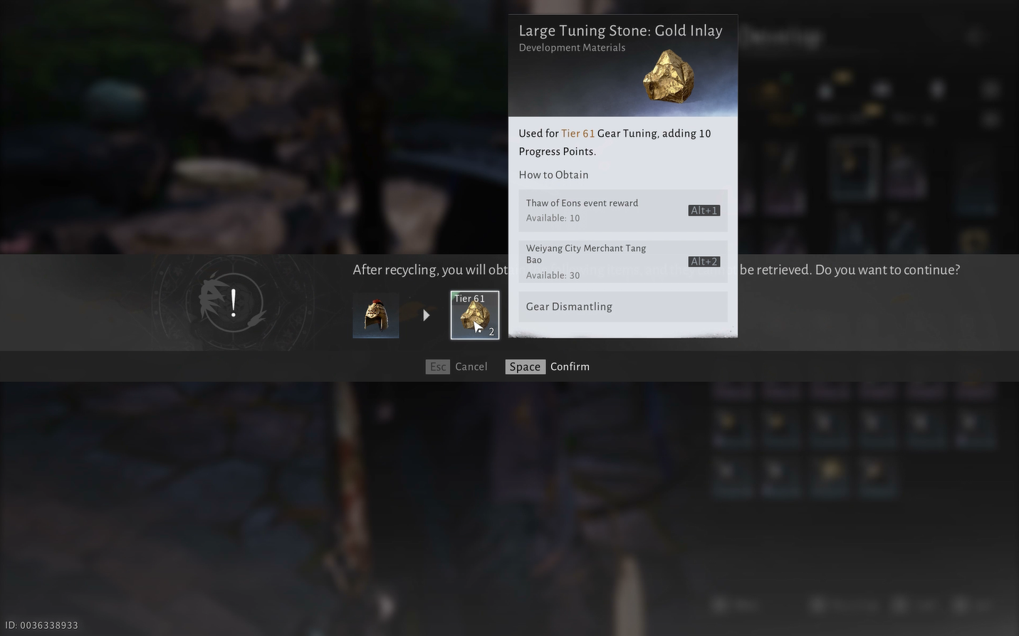 - Large Tuning Stone: Gold Inlay – For Tier 61 gear, +10 tuning progress.