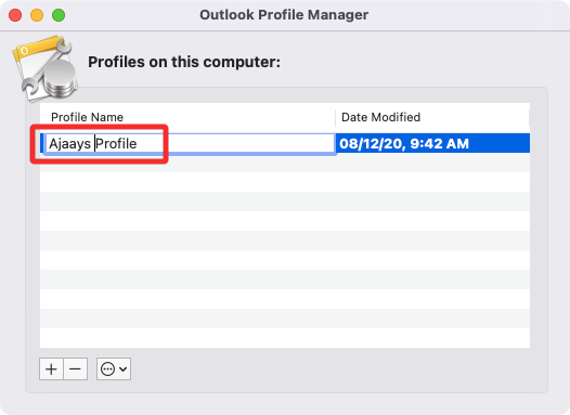 Inside Outlook Profile Manager, you should see the list of profiles you’ve loaded onto the Microsoft Outlook app. Here, check if the profile you’re using has a special character to its name under the ‘Profile Name’ section. To edit this name and remove special characters from it, press the Enter key on your keyboard.