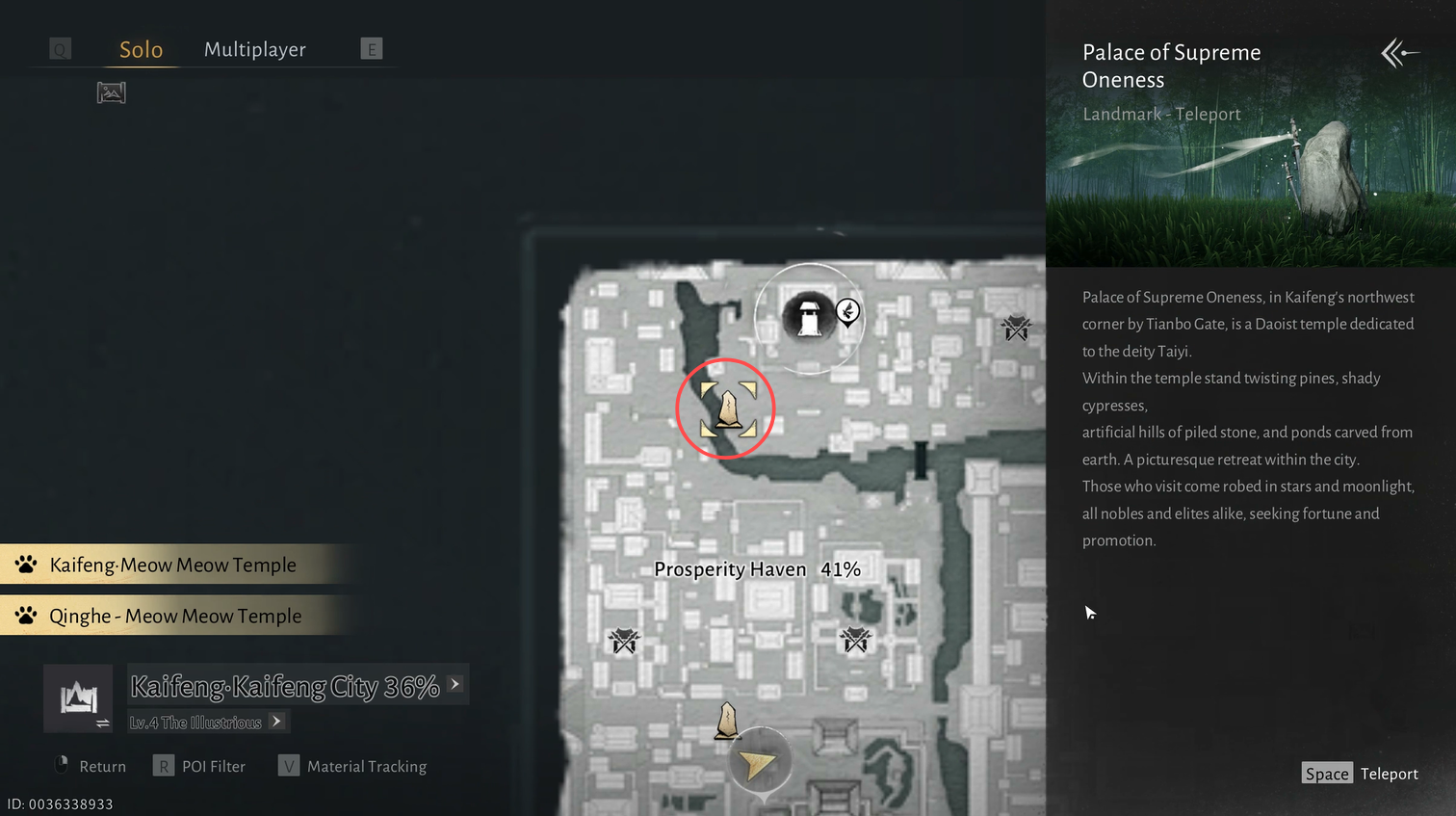 The Palace of Supreme Oneness is located in Kaifeng City near Prosperity Haven.