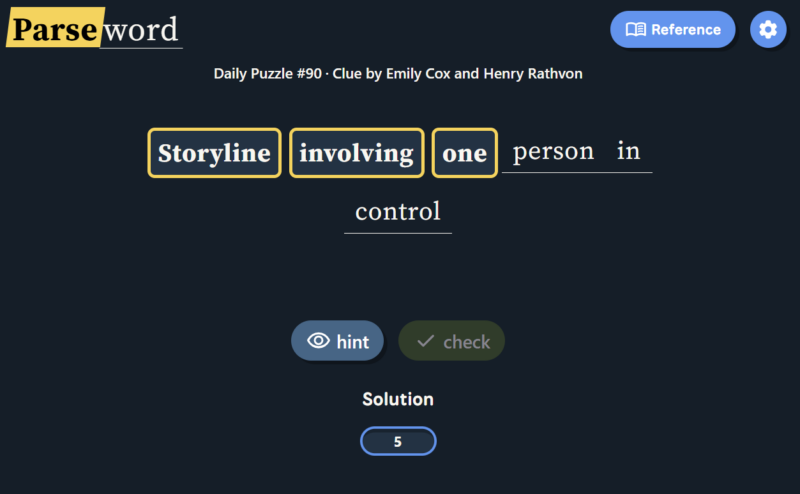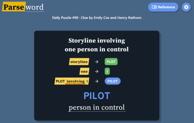 Instead of guessing a word from a grid or filling crossword clues, Parseword gives players a single clue and asks them to interpret the meaning behind it. The clue usually contains both a definition of the answer and instructions for constructing the answer through word transformations.