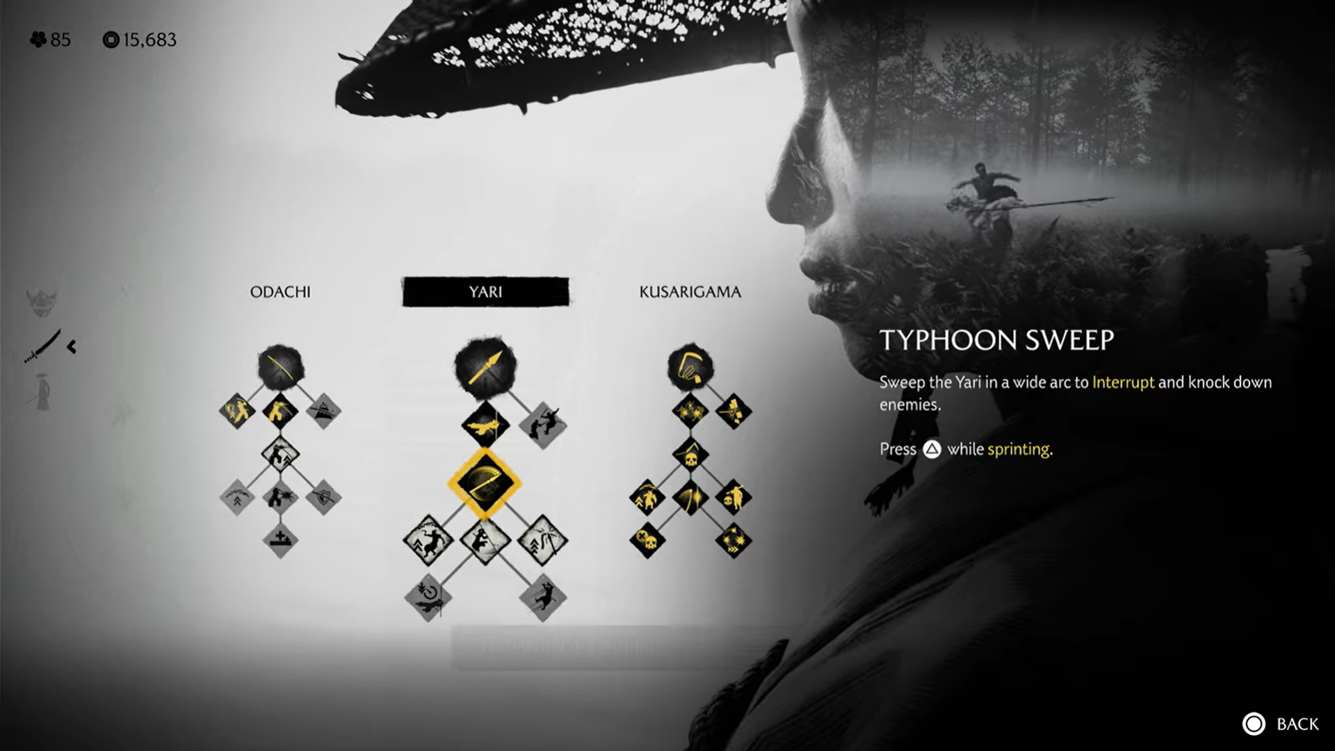Spend your awarded technique point to unlock Typhoon Sweep. This new move enables Atsu to perform a sweeping spear attack, ideal for handling clustered enemies and regaining space in melee battles.