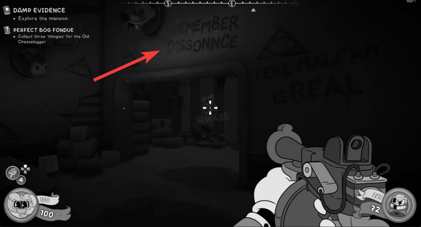 Inside the structure, locate a gate labeled “Remember Dissonance.” This clue is important and marks the correct path.