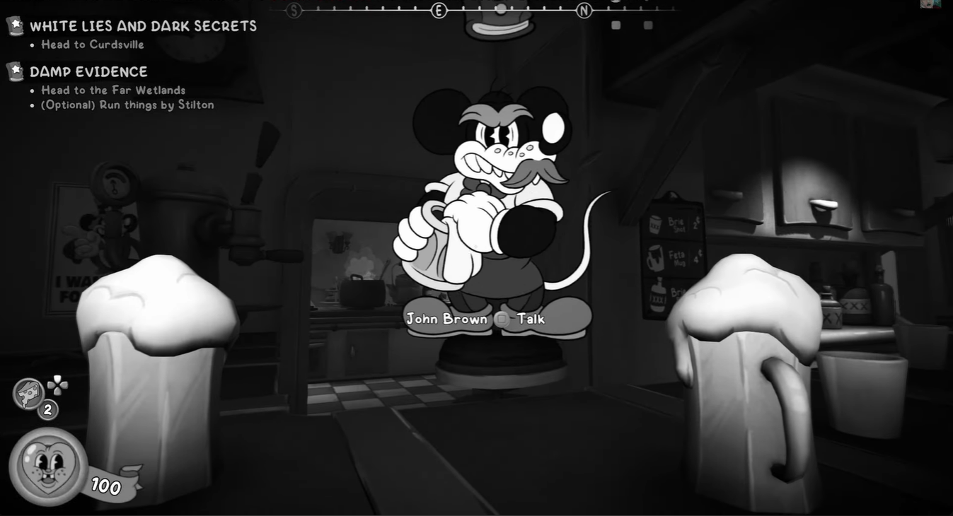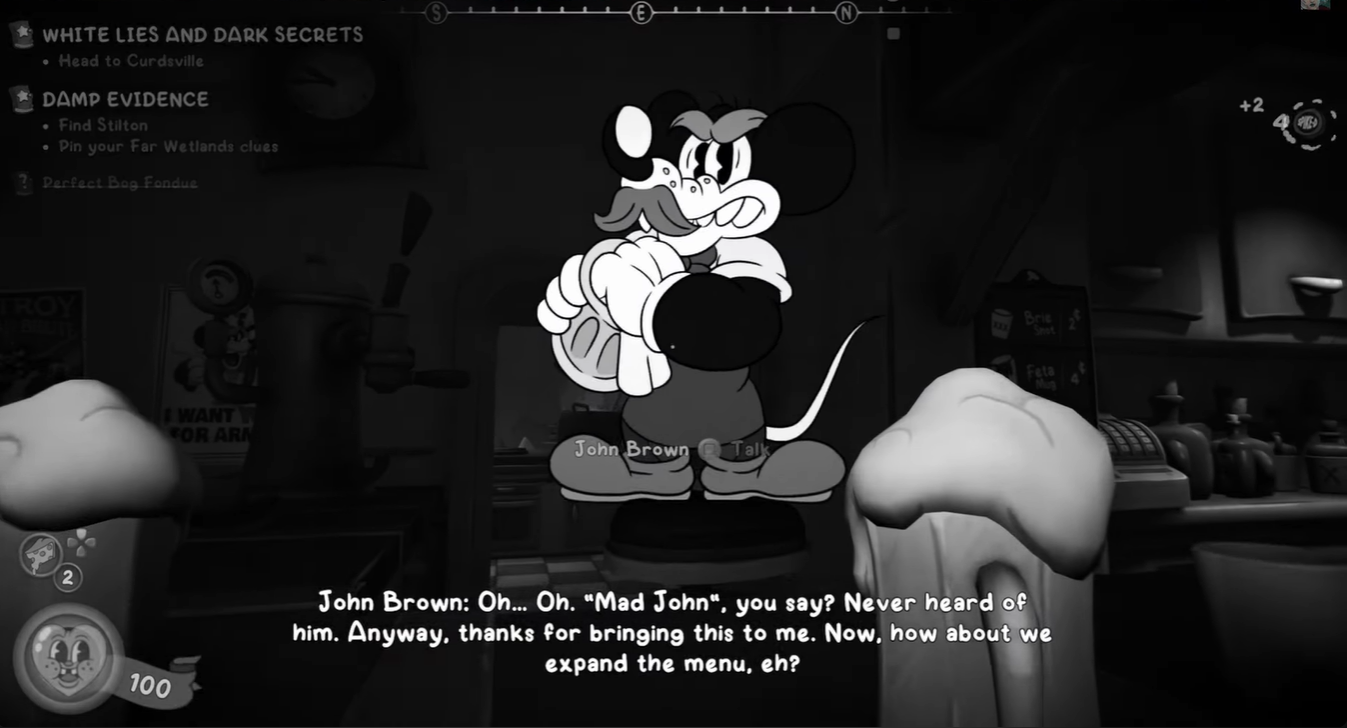 Start by conversing with John Brown at Little & Big parlor in the Mouseburg town. He will ask you to track down the recipe from the Old Cheeselegger at his ranch.