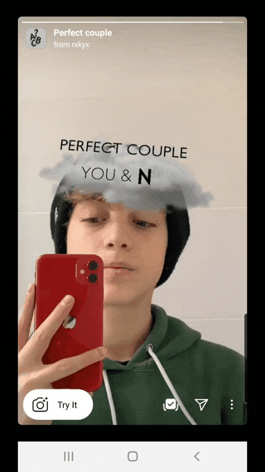 The ‘Perfect Couple’ filter is an AR filter that matches you with a random letter of the alphabet. The idea is to hint at the person who you would make a perfect couple with. When used, the filter scrolls through different alphabets until it lands on one. The filter then reads ‘Perfect couple | You & _’.