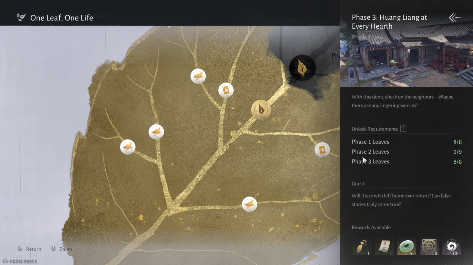 To complete Phase 3: Huang Liang at Every Hearth quest and finish One Leaf, One Life quest line, you must finish all of the quests in Phase I, Phase II and Phase III: