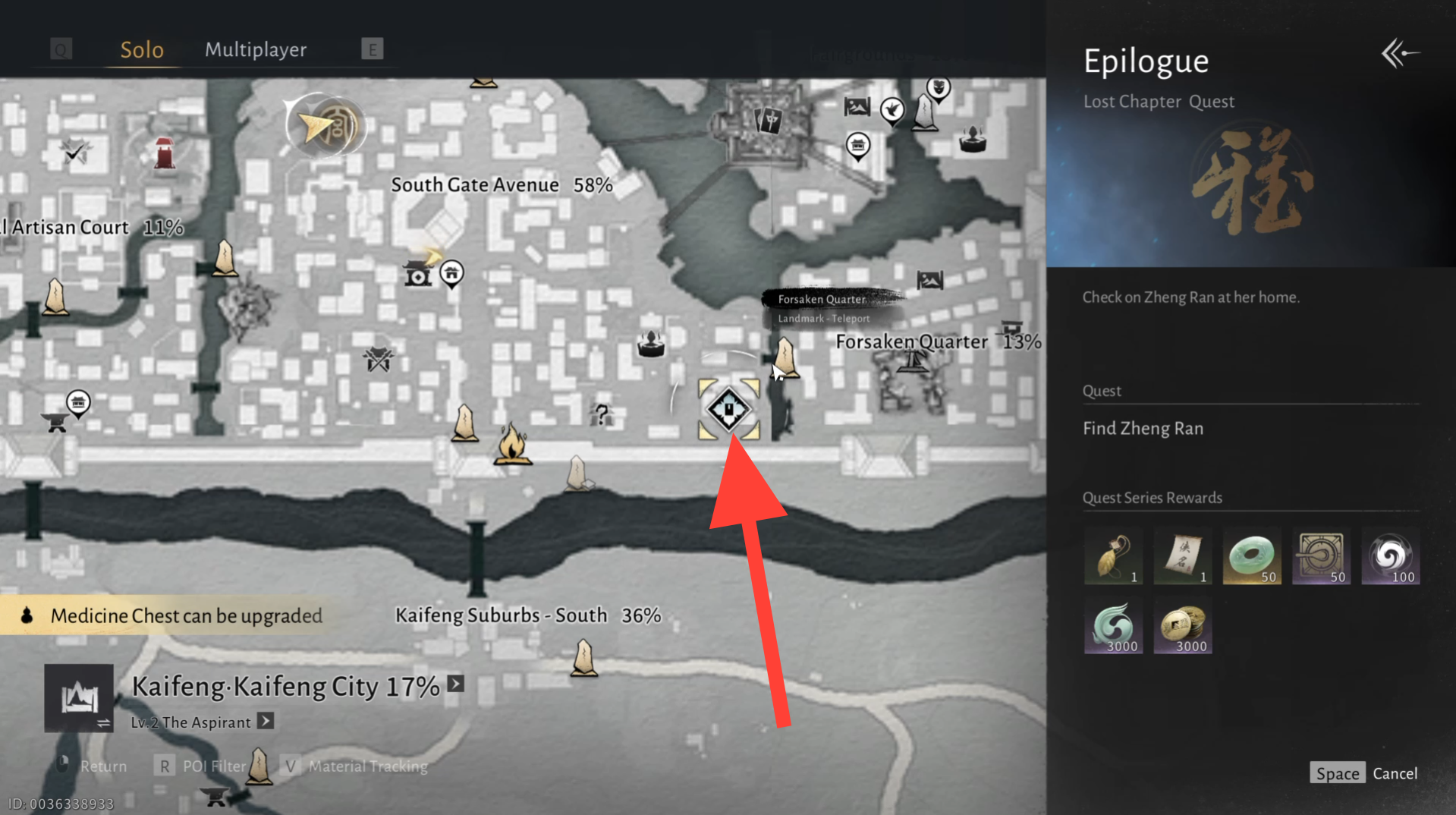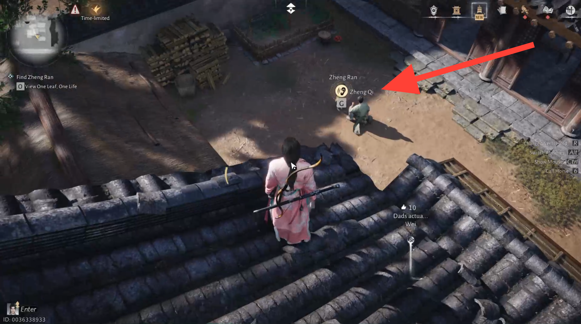 Head to the marked location, climb onto the roof, and eavesdrop on Zheng Ran and Zheng Qi to start the quest.