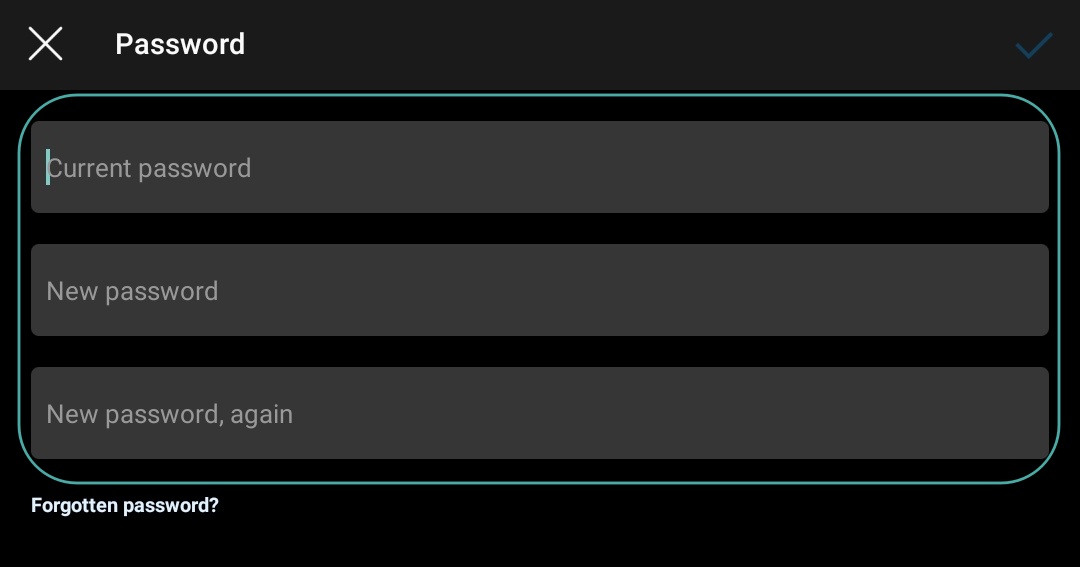 Note: The tick will only be available if your new password matches the retyped password.